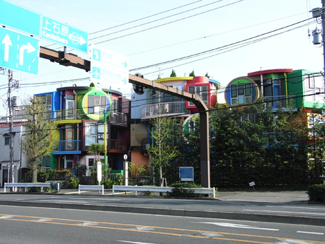 この建物は、前を通るたびにずーっと幼稚園か保育園か何かと思っていたのですが、「三鷹天命反転住宅」という有名なデザイナー(荒川修作+マドリン・ギンズ)物件で、実際に賃貸マンションとして貸し出されているとつい先日知りました。